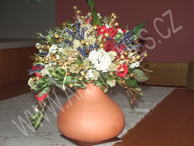 Není to úžasné? Lidská ruka spojuje přírodní materiály v díla, která nás často provázejí dlouhé měsíce. Jen pohled na ně nám spraví náladu. Voňavé lístky sušených květů, klasy, větvičky a další materiály svázány rukou výtvarníka pohladí duši a dodají nám energii. Tlumené barvy suchých květů promění šedivý zimní den v krásné vzpomínky na zářivé léto a barevný podzim. Uklidňují a hladí nás. Suché vazby se vyjímají v každé místnosti. Nabízíme vám kontakty na nás v levé části této stránky, aby jste nám mohli sdělit vaše představy. |