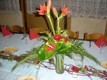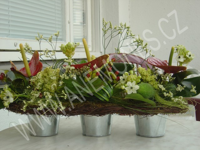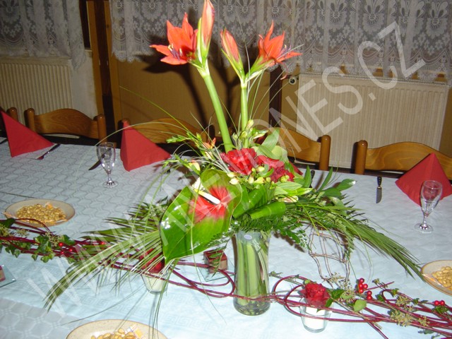 Příroda nás umí, v dobrém slova smyslu, každý den překvapit, uchvátit, obemknout. Nabízí vnímavému oku tolik krásného až se někdy musí potýkat přímo s bezradností. Pro kterou z všemožných variant se rozhodnout? Každý den se i my rozhodujeme, jak nejcitlivěji spojit vazbu a umění člověka s přírodou. Zvolíme-li správně a "ušijeme" vše na míru, květiny nám ihned řeknou vše o obdarovaném či hostiteli. Květiny promlouvají svou barvou, vůní, křehkostí, nevšedností. Je velmi důležité nepřehlédnout prostředí, kde budou umístěny vazby, které mají potěšit vaše oko. Vše musí působit jako dokonale harmonický celek. K tomu nám zároveň poslouží i široká nabídka nádob a váz nejrůznějších tvarů, materiálů a barev, které dnes můžete bez problémů pořídit. Jako tečku na závěr můžeme každou vazbu doplnit přízdobami - stuhami, korálky, drátky, peříčky, proutím..... Sortiment nabízených doplňků je dnes nepřeberný. Odměnou za všechno to snažení je pouze a jedině zcela prostý a spontánní úsměv na tváři obdarovaného a jiskra v jeho či jejích očích. Věříme, že jsme vás ukázkami našich vazeb přesvědčili a napříště se na nás jistě obrátíte. Kontakty naleznete v levé části této stránky. |